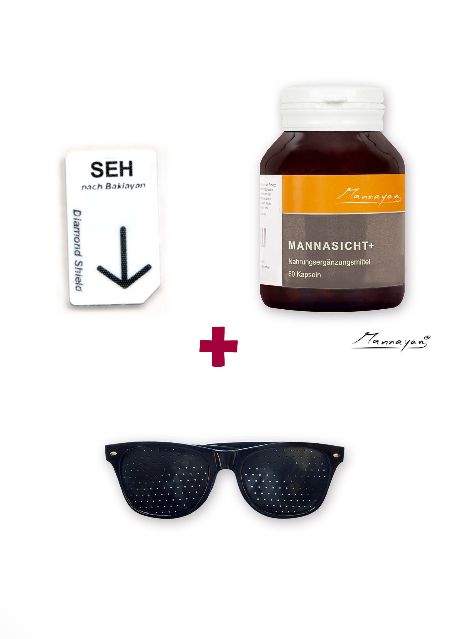 The Chipcard SEH for the Diamond Shield Zapper together with the popular Mannayan Mannasicht+ and our new eye trainer: the Perforated grid glasses (available in three different models).Total value of the three products 71,30 € - now for only 60,- €!