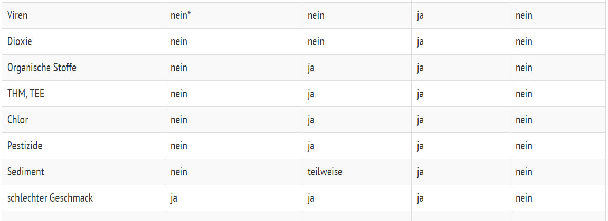 A comparison of different drinking water filter systems (German version)