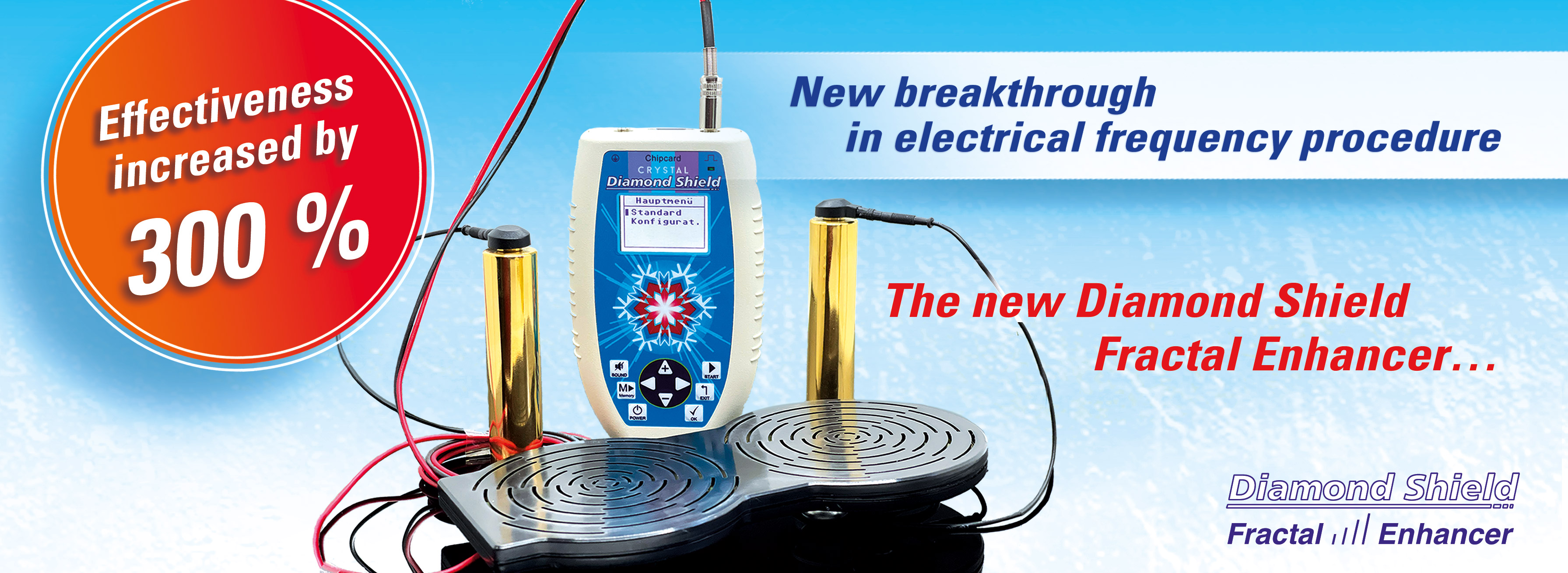 The effect of the application is tripled. This is truly a new breakthrough in electrical frequency application. This enhancement should not be missing when using the Diamond Shield Zapper from now on.